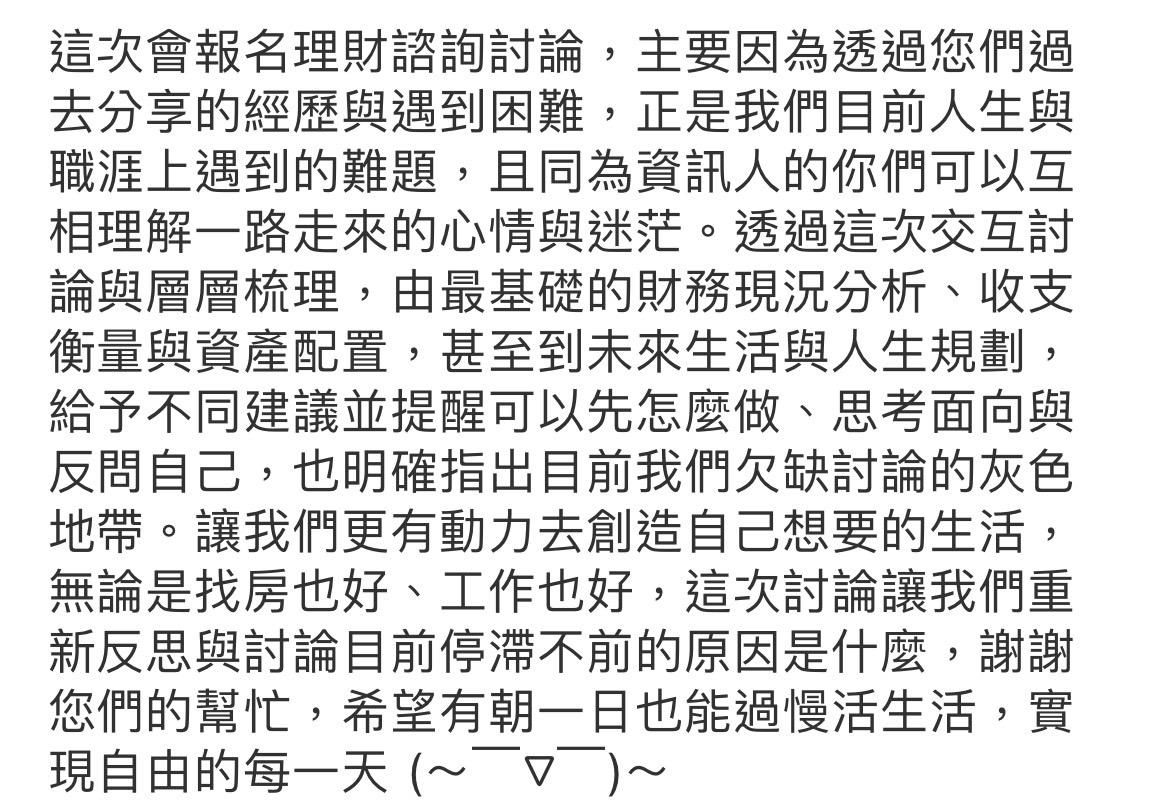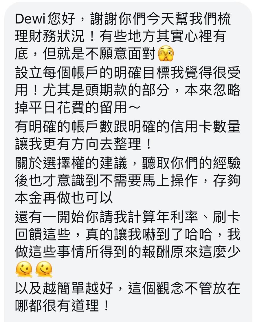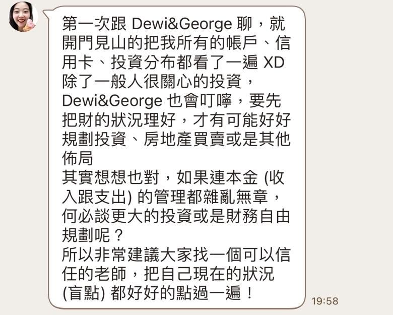📍 如果你想梳理個人理財(TWD $4,200/hr)