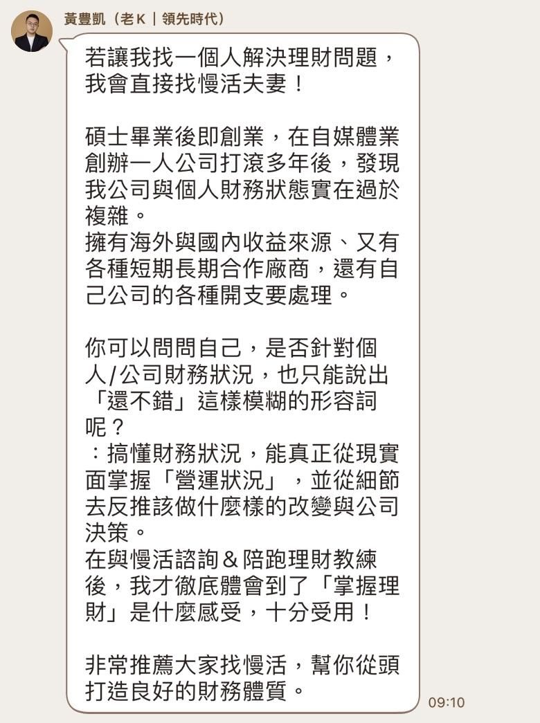 在協助斜槓副業者、一人公司、小型團隊,發現「因沒做理財而事業不穩固」的跡象