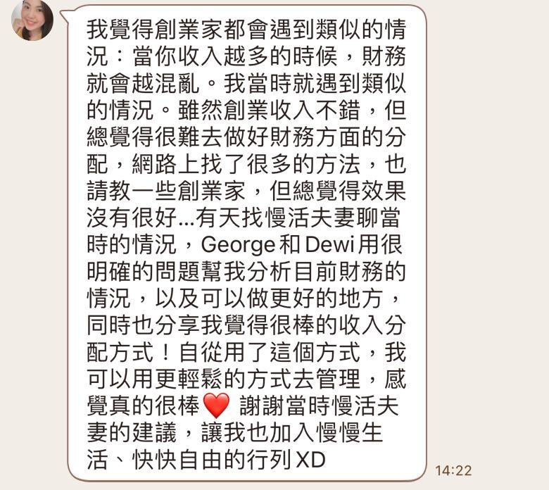 嗨,我們是慢活學院的創辦人-慢活夫妻 George & Dewi,同時是1對1理財教練、財商教育的推廣者,致力於讓每個人的投資理財階段,都是穩健、踏實、有方向性及具掌握性的