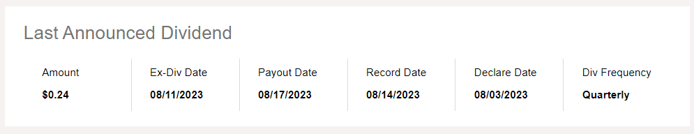 ▲ 此為蘋果公司在2023年其中一季的配息資料。資料來源:Seeking Alpha