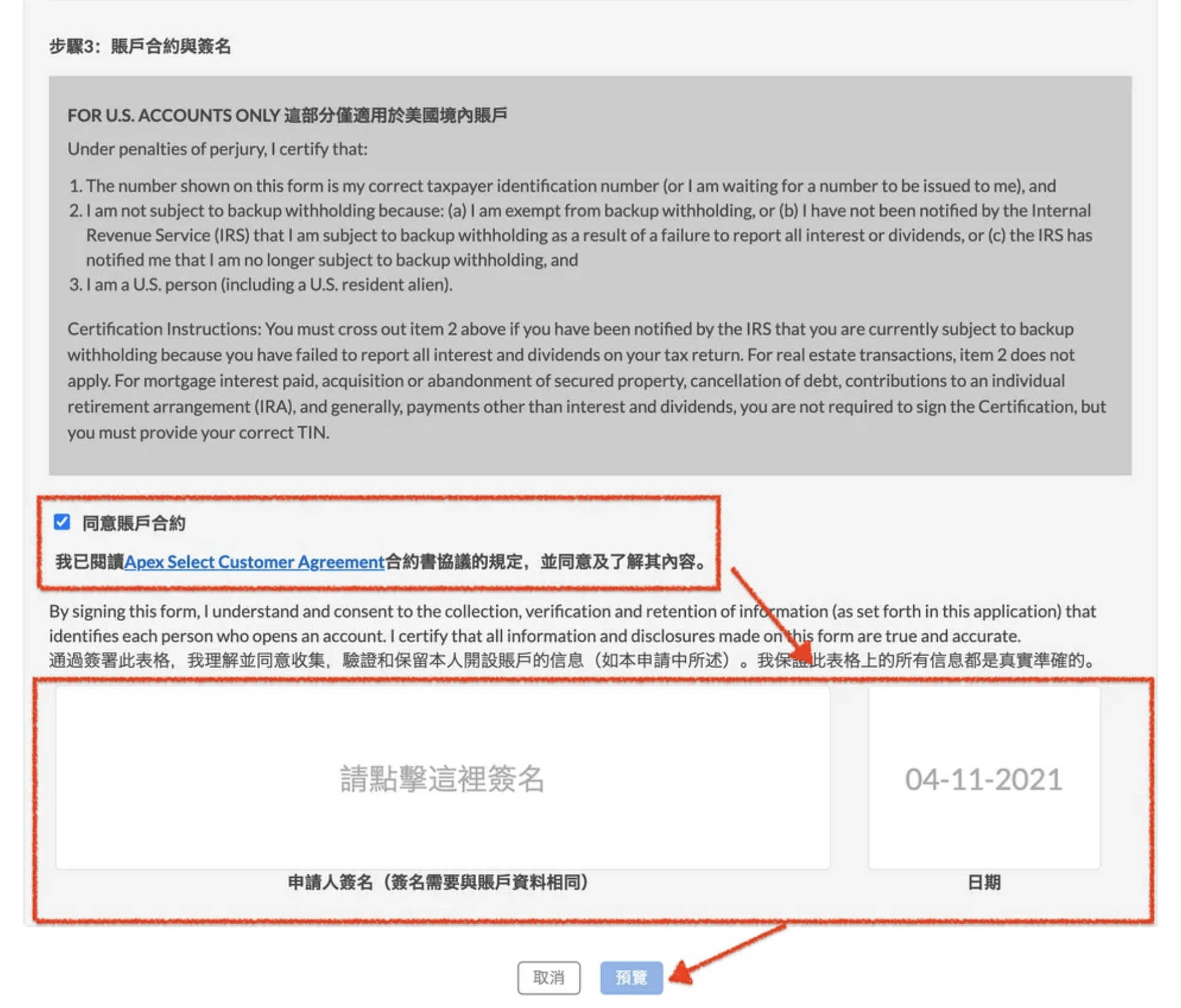 填寫賬戶相關的資訊,後面記得同意合約及簽名,這樣就完成申請了