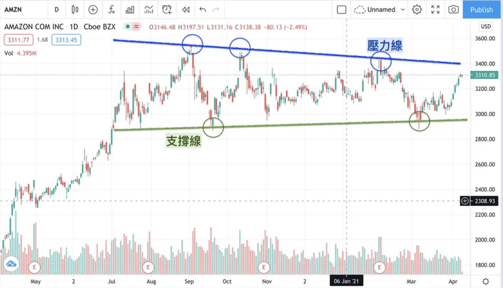 不過說真的,通常股價線圖不一定會這麼完美,剛好讓你一眼就看出支撐線跟壓力線,所以很常出現同一張圖,每個人畫出來的支撐壓力線都長不一樣。