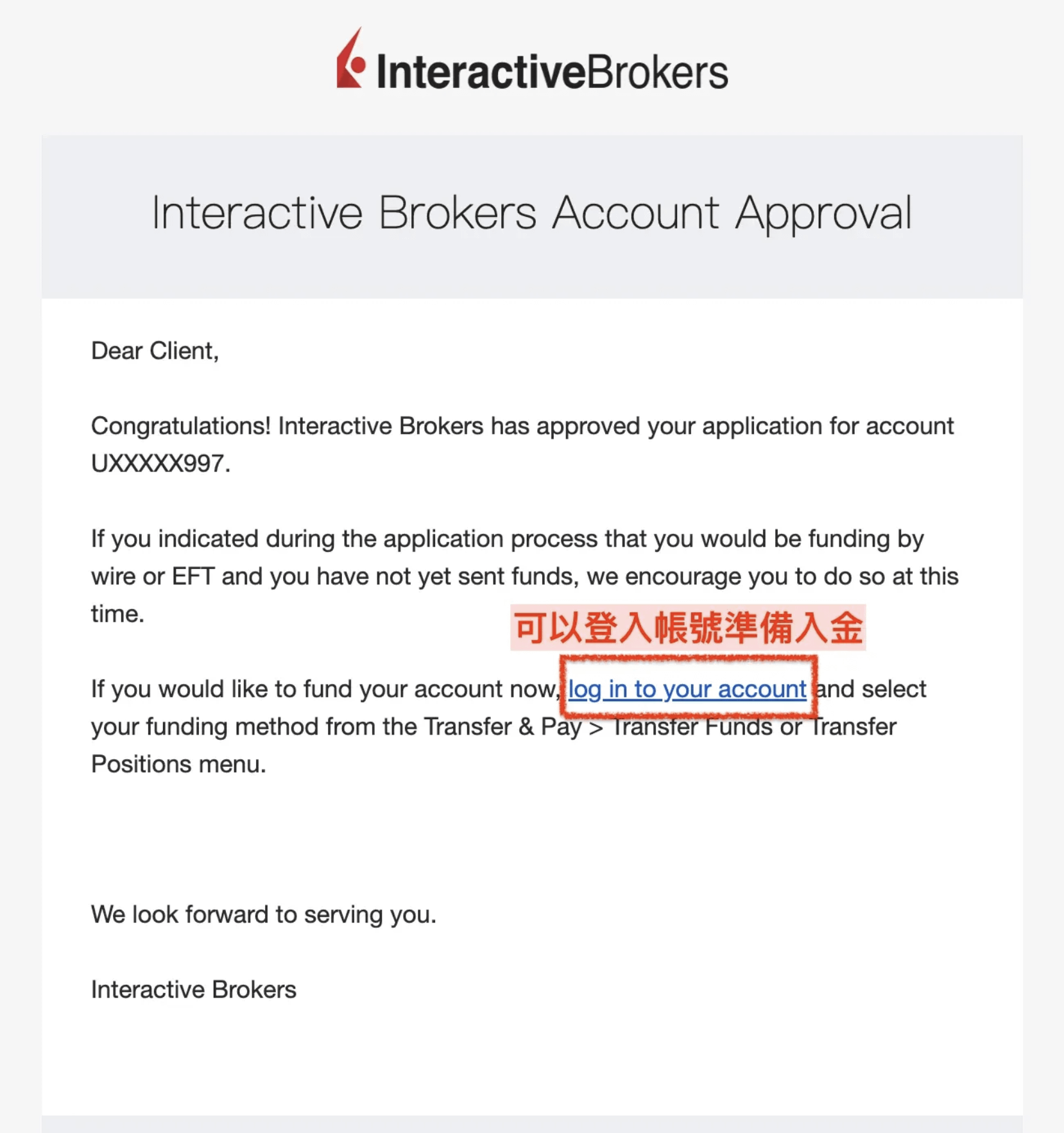 記得要看寄件人是「Interactive Brokers」的信,如果一直沒收到信件的話,建議從垃圾郵件或是廣告郵件那邊看看,有時候信件會在那邊出現!
