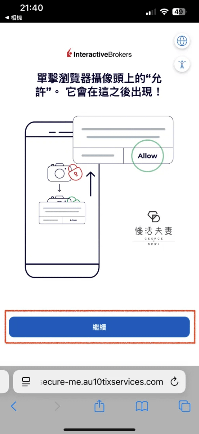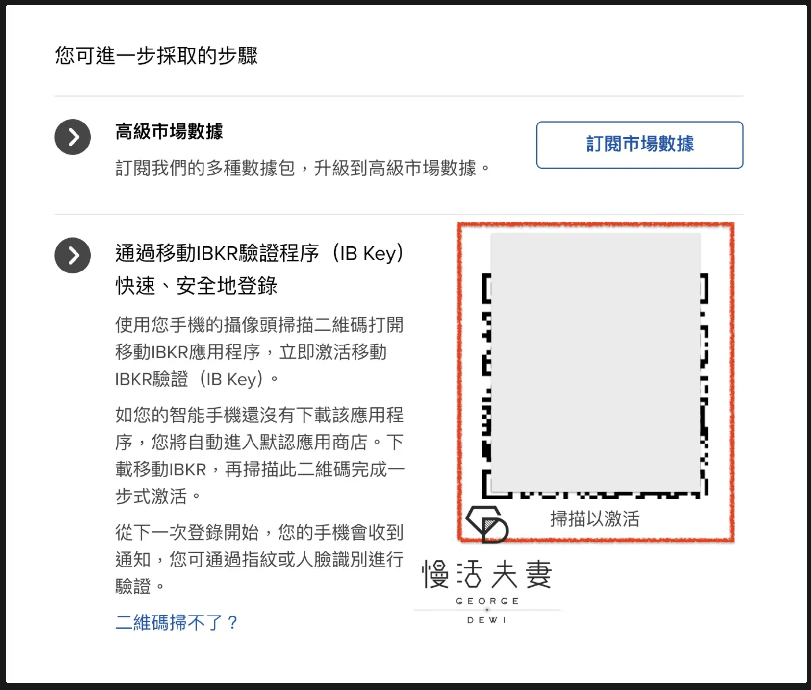 這步驟是為了保護你的帳戶,需要你先下載好 IB 的APP,然後用手機掃描畫面上的 QR code,沒有的話掃完 QR code 畫面會自動跳轉到下載頁面。