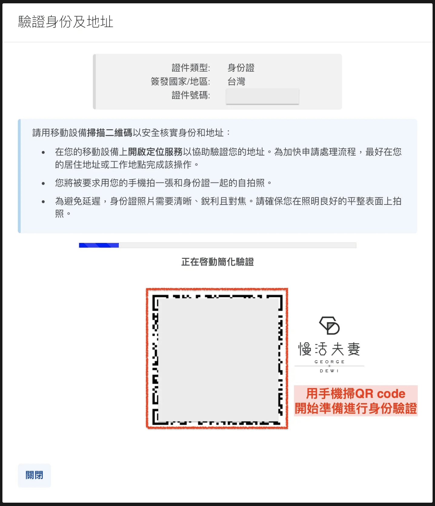 用手機掃描你畫面上的專屬 QR code,千萬不要掃下面的 QR code,因為每個人當下開戶的連結是獨一無二的專屬連結喔!