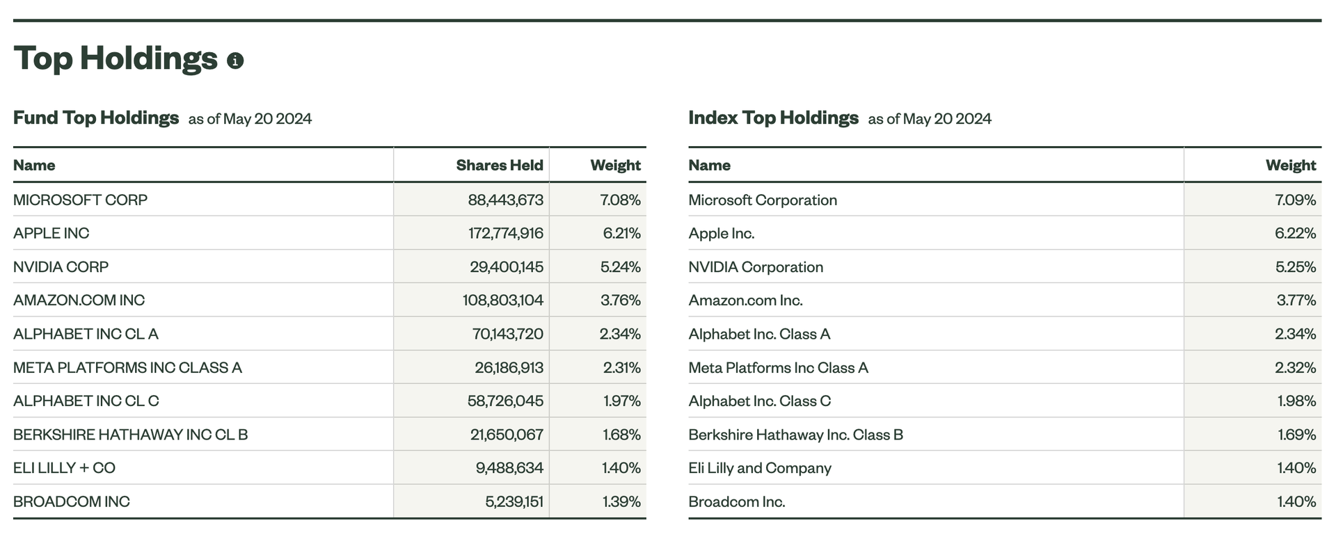 VOO 的前5大持股:「Apple(蘋果)、亞馬遜、微軟、NIVIDIA、Google」